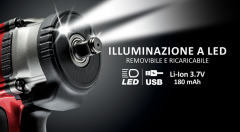 - Unità LED rimovibile e ricaricabile tramite USB (Batteria Li-Ion 3.7V 180 mAh)