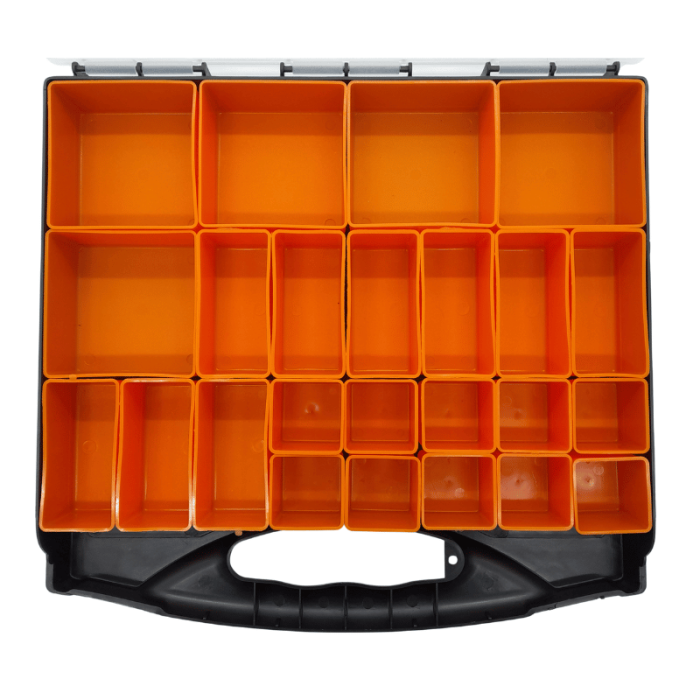 L’organizer Terry BINS 24 rappresenta la scelta ideale per chi necessita di ampio spazio, modularità e resistenza. Grazie alle vaschette removibili e alle dimensioni generose, consente una gestione efficiente della minuteria, migliorando l’ordine e la produttività in qualsiasi ambiente di lavoro.