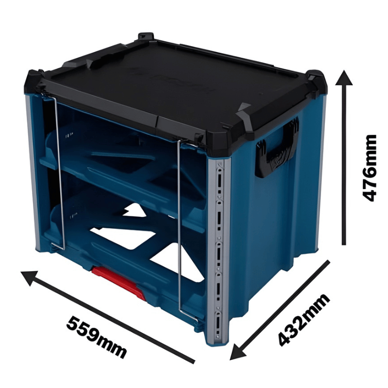 L-BOXX Contractor Rack 2 è progettato per contenere due L-BOXX standard e può essere impilato sopra o sotto qualsiasi altro componente dell’assortimento L-BOXX Contractor.