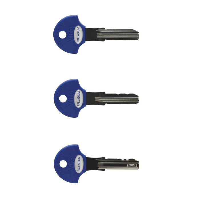 in ottone nichelato, con impugnatura di facile presa (anche indossando i guanti) a profilo Viro Top Security, 3 in dotazione.