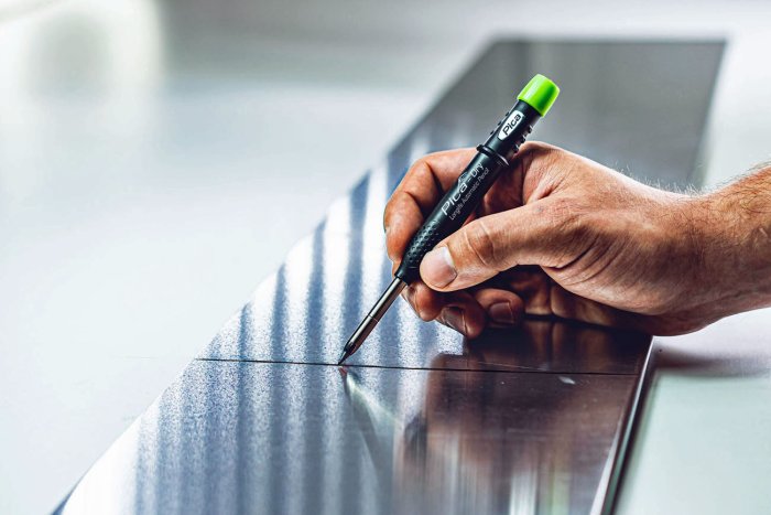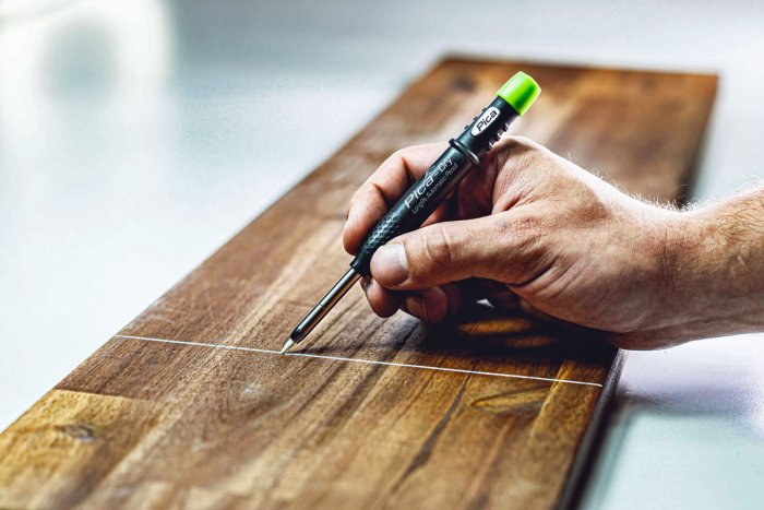 - La mina da carpentiere in durezza H permette di tracciare segni leggeri su superfici asciutte