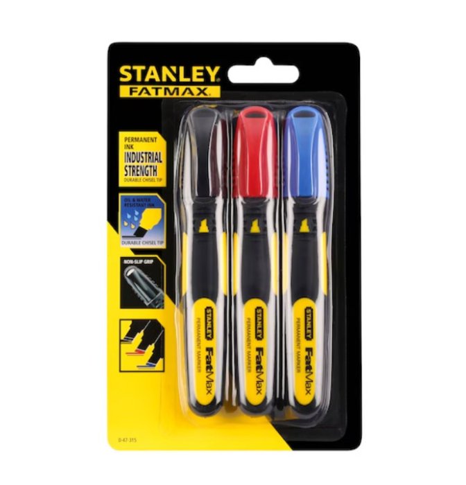- Stanley 0-47-315 Pennarello Indelebile rosso - blu - nero FatMax Colour - 3 Pezzi